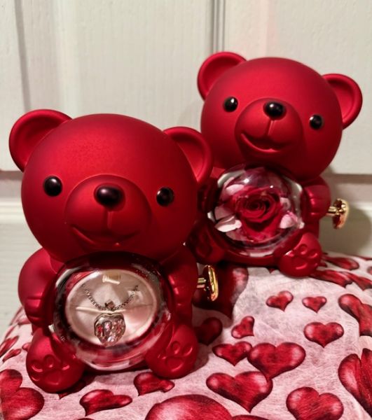 this sweet teddy hides inside him a beatiful eternal rose and a lovely necklace